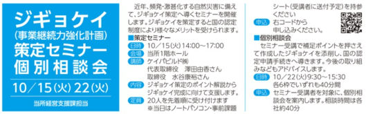 10月15日、22日はジギョケイ策定セミナーも開催!