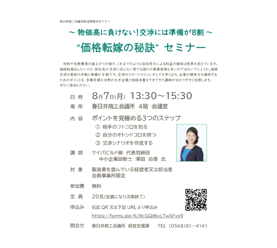 ~物価高に負けない!交渉には準備が8割~ “価格転嫁の秘訣”セミナー 開催します