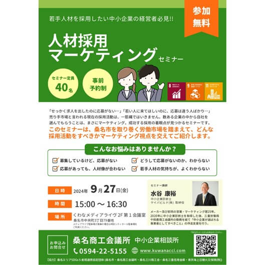 桑名商工会議所主催で、若手を中心とした人材を採用したい企業向けに「人材採用マーケティングセミナー」を開催します。